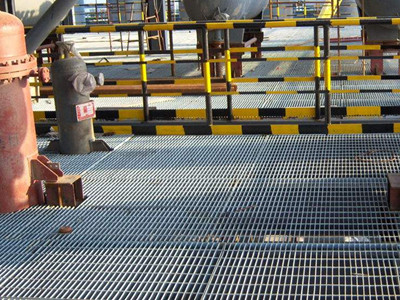 化工廠用鋼格板 鋼格板是用承載扁鋼和橫桿按照一定的間距進行正交組合,通過焊接或壓鎖加以固定的開敞式鋼構件;橫桿一般采用經過扭絞的方鋼、也可采用圓鋼或扁鋼,材質分為碳鋼和不銹鋼鋼格板主要用來做鋼結構平臺板、溝蓋板、鋼梯的踏步板、建筑物吊頂?shù)取? 簡介 ···